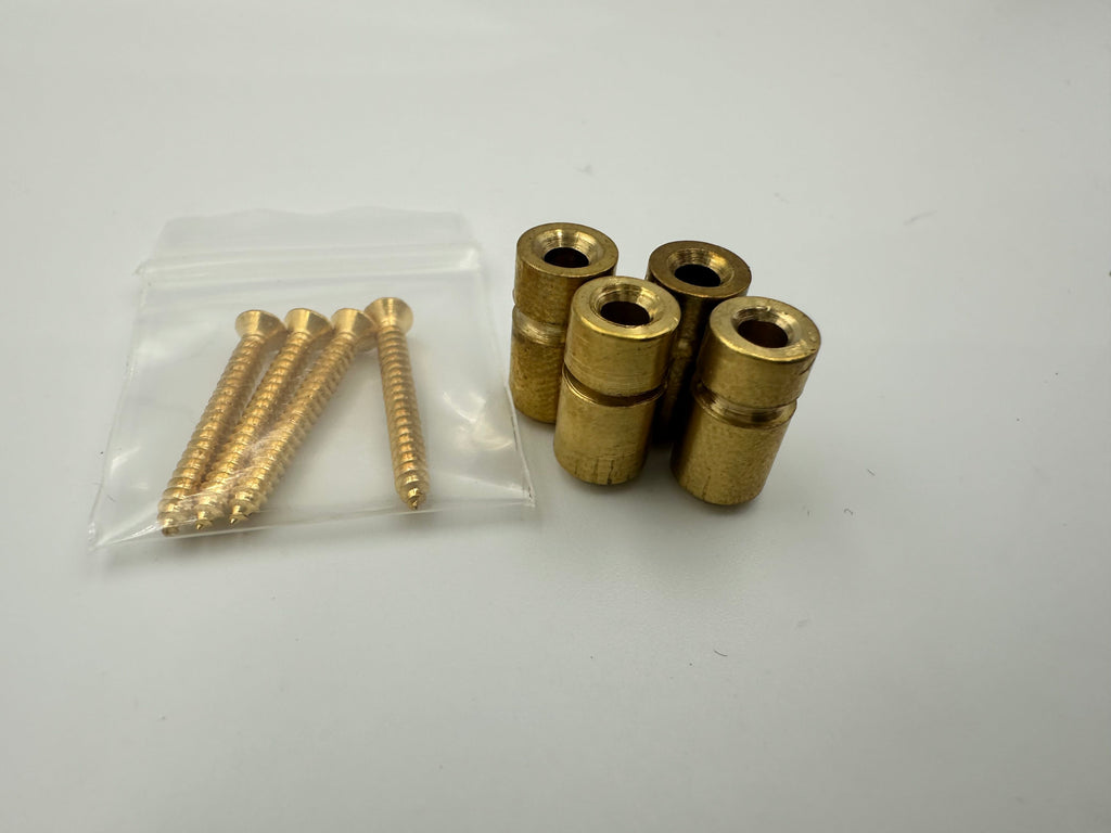 Made from 1/4" diameter solid brass rod, these guides are center drilled for direct mounting to headstocks with the included screws. Each guide is grooved on a lathe to create a channel for the string to sit snugly in.